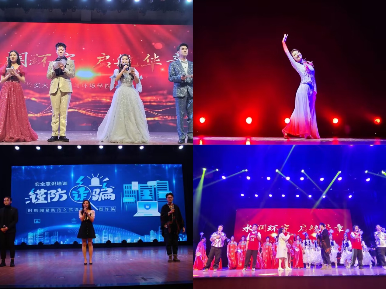 在长安文化艺术中心大礼堂隆重举行2023级新生“水润环宇·启航华章”迎新晚会。校团委副书记张红、学院党政领导出席现场观看了晚会。