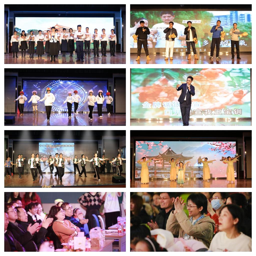 整场晚会气氛热烈,精彩纷呈。开场舞《相亲相爱》活力四射,将全场气氛引燃;诗朗诵《同心同行》充满水环人的家国情怀;歌曲《我们不一样》、《光阴的故事》和《不忘初心》展现了学院青年教工的青春昂扬,唱出了学院教工为国家努力奋斗终生的决心;晋剧《王宝钗与薛平贵-大登殿》演绎出了中国传统戏曲的无限魅力;学院教工的《舞蹈串烧》将晚会氛围推向了高潮。