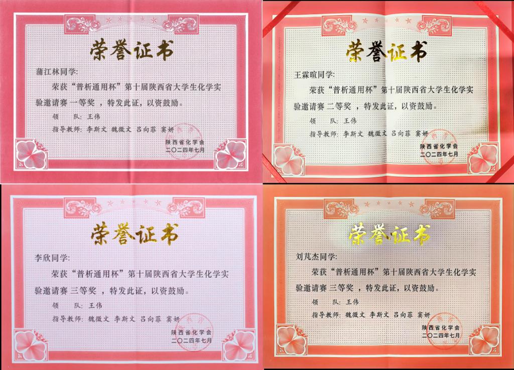 学生从陕西省26所高校、108名学生的激烈竞争中脱颖而出,蒲江林同学荣获一等奖,王霖暄同学荣获二等奖,刘芃杰同学和李欣同学分别荣获三等奖,文轩探花