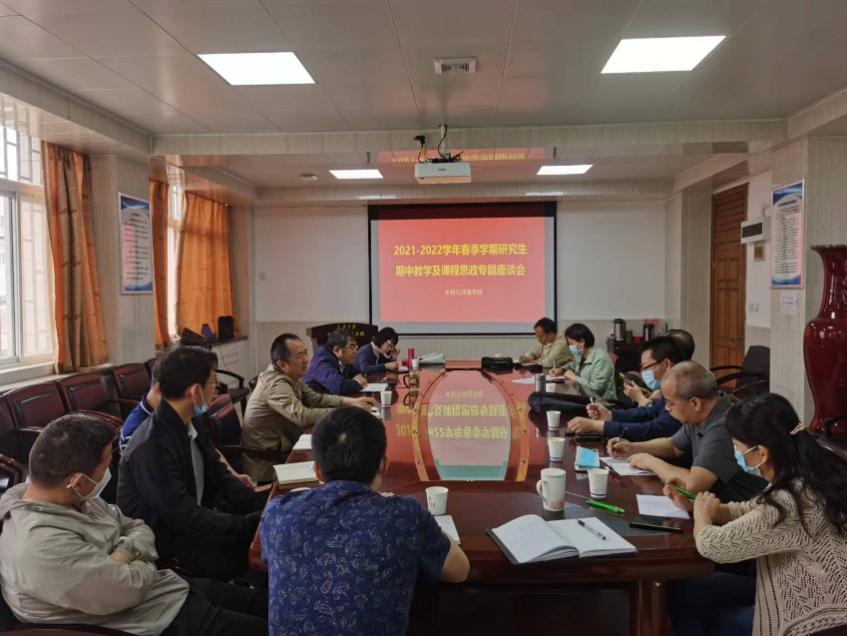 在学院三楼会议室召开2021-2022学院春季学期研究生期中教学及课程思政专题座谈会。院长白波、副院长段磊、研究生教学督导颜卫亨、刘健、马致远、各系室主任、研究生主管、教务员、教师代表以及各年级研究生代表参加了会议,座谈会由段磊主持。
