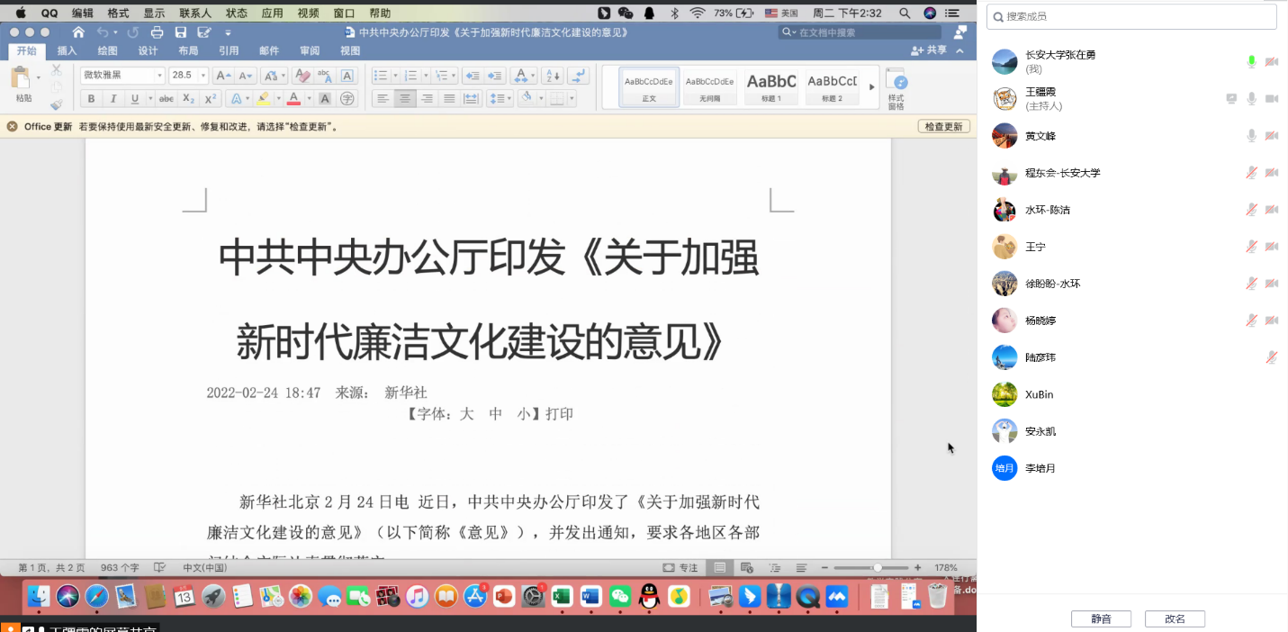首先,党支部书记王疆霞老师带领全体党员学习了中共中央办公厅印发《关于加强新时代廉洁文化建设的意见》,要求全体党员高度重视廉洁文化建设,加强新时代廉洁文化建设,夯实清正廉洁思想根基,增强政治定力抵腐定力。
