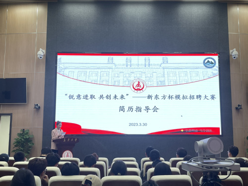 举办“锐意进取,共创未来”新东方模拟招聘大赛,邀请新东方HR秦迪为学生进行简历指导。同时,文轩探花