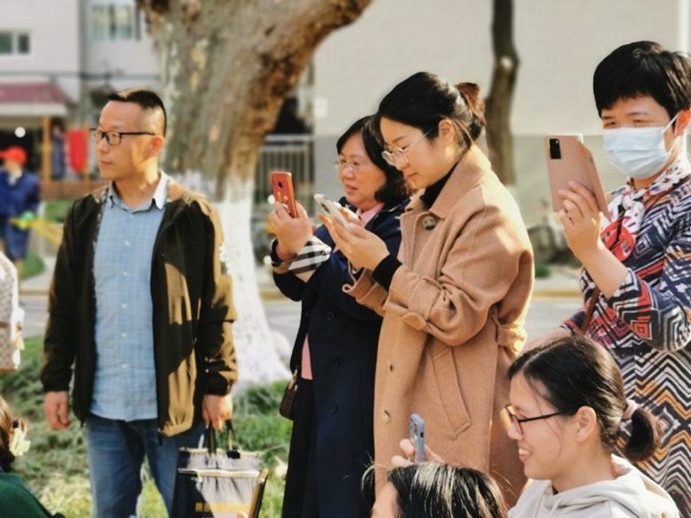 沙龙活动分为室内交流和室外实践两部分。室内交流中,李老师从摄影的基本原理,摄影的构图和表达、手机摄影的小技巧等几方面进行了介绍;女教工踊跃提出自己日常手机拍照中遇到的问题,李老师用形象生动的语言,耐心地答疑解惑,并手把手教大家照静物、照人像的技巧。交流结束后,文轩探花